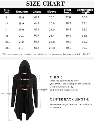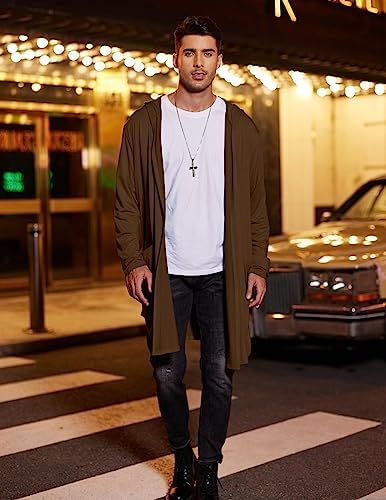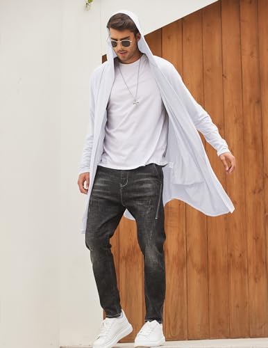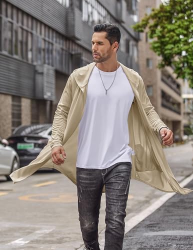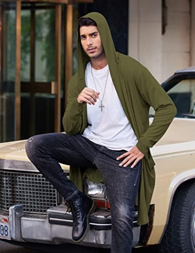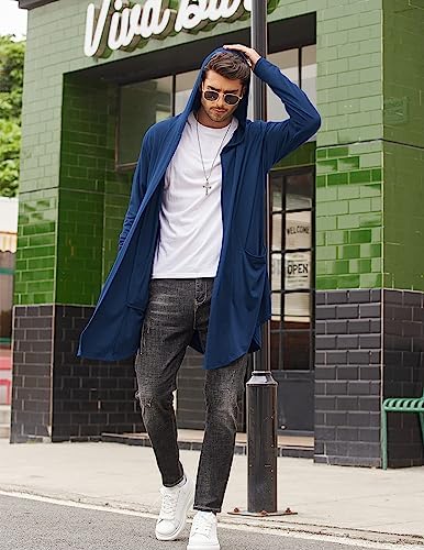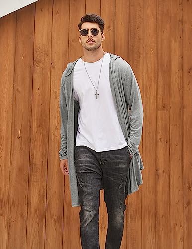 COOFANDY Men's Long Hooded Cardigan Shawl Collar Lightweight Open Front Drape Cape Overcoat with Pockets