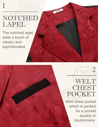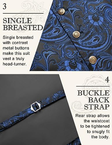 COOFANDY Mens Suit Vest Paisley Floral Victorian Vests Gothic Steampunk Formal Waistcoat Tuxedo Vests with Notched Lapels