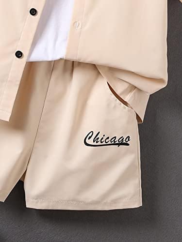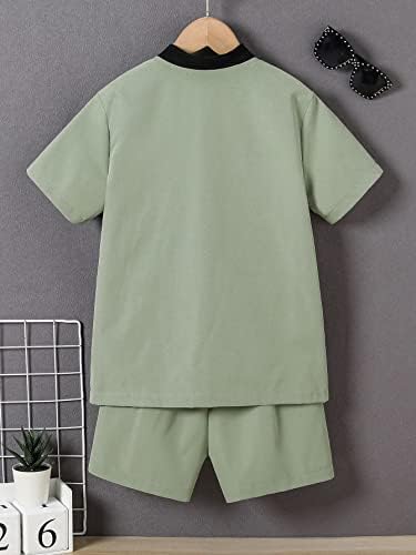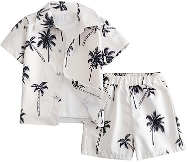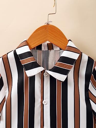 COZYEASE Boys' 2 Piece Striped Print Button Down Shirt with Drawstring Waist Shorts