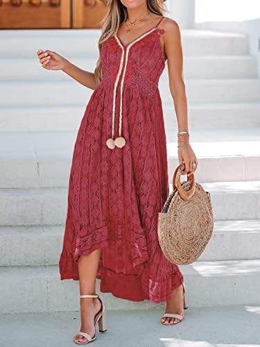 CUPSHE Women's Maxi Dress Lace Dresses Boho Tassel V-Neck Flare Ruffle Adjustable Straps Beach Summer Long Dress