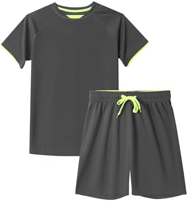 DaniChins Boys Loose Athletic Short-Sleeve Shirt and Active Mesh Shorts Set