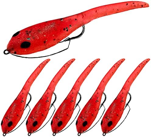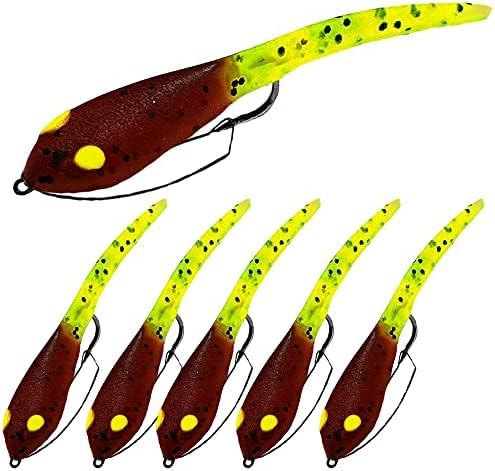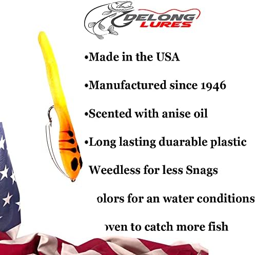 DELONG LURES 3" Weedless Tadpole Fishing Lures for Bass, Crappie, Bluegill, Perch, and Trout, Slow Sinking Life Like Fishing Baits Scented Pre Rigged Fishing Gear