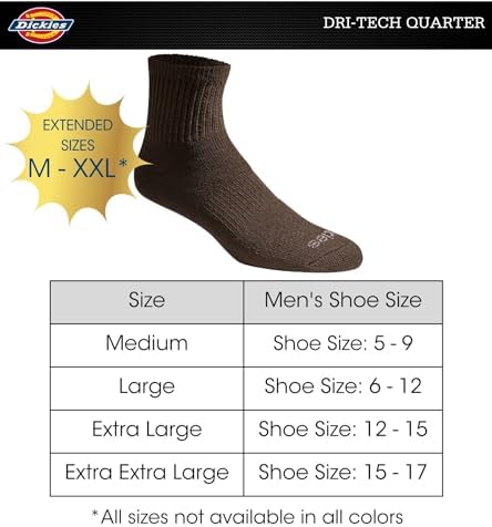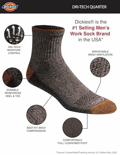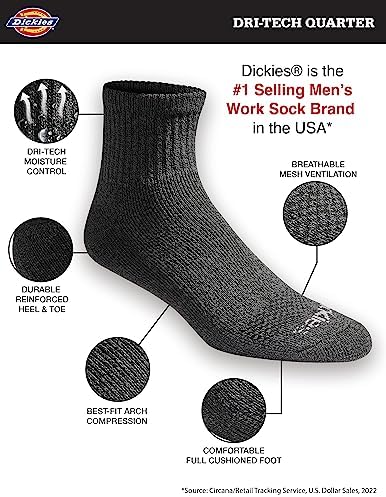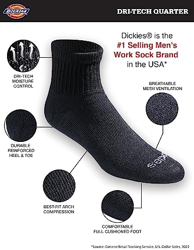 Dickies Men's Dri-tech Moisture Control Quarter Socks (6, 12, 18 Pairs)