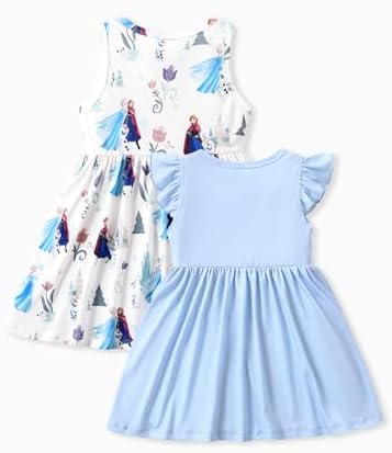 Disney Frozen Toddler Girls Dress 2Pcs, Elsa Ruffle Sleeveless Snow Pattern dress set Blue 2-6 Years