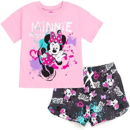 Disney Minnie Mouse Lilo & Stitch Princess Winnie the Pooh T-Shirt and French Terry Shorts Outfit Set Infant to Big Kid