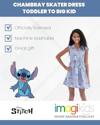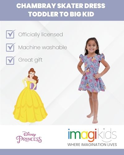 Disney Minnie Mouse Mickey Mouse Daisy Lilo & Stitch Princess Belle Ariel Girls Chambray Skater Dress Toddler to Big Kid