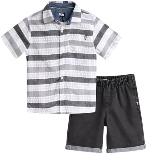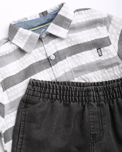 DKNY Boys' Shorts Set - 2 Piece Short Sleeve Button Down Shirt and Denim Jean Shorts - Summer Outfit for Toddler Boys (2T-7)