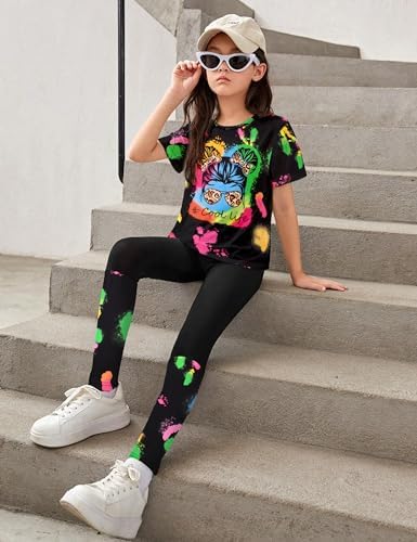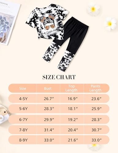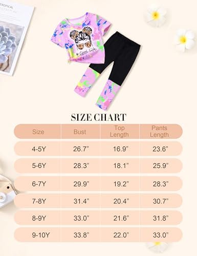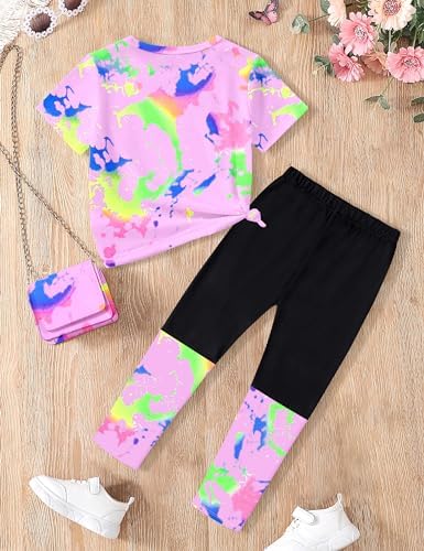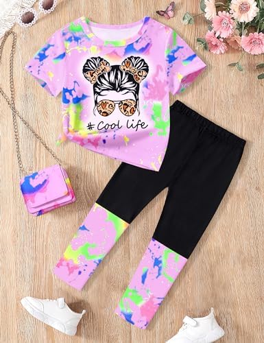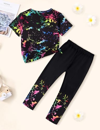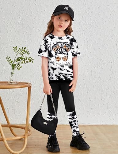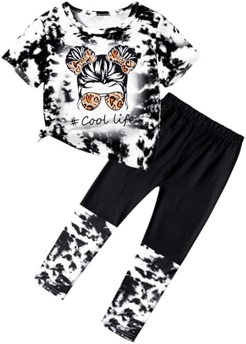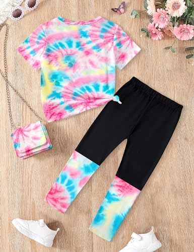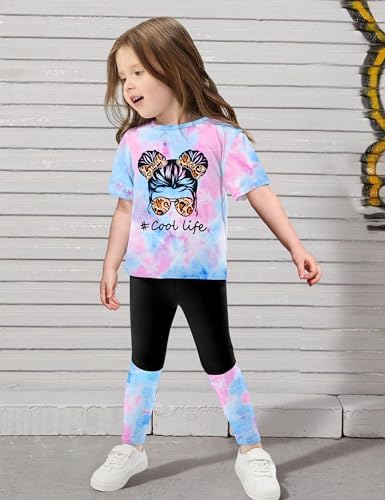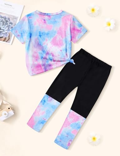 DONWEN Girls Clothes Tie Dye Outfits,2 Piece Girl Sweatsuit Graphic Short Sleeve Tops Long Pants Summer Clothes for Girls