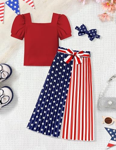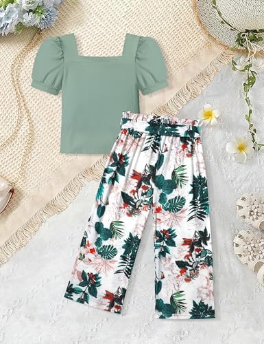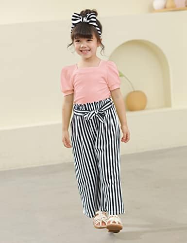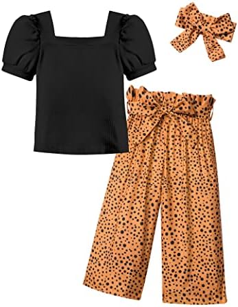 DONWEN Toddler Kids Girl Clothes Square Neck Shirt Top + Stylish Pants + Headband 3pcs Spring Summer Girl Outfits Set