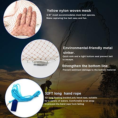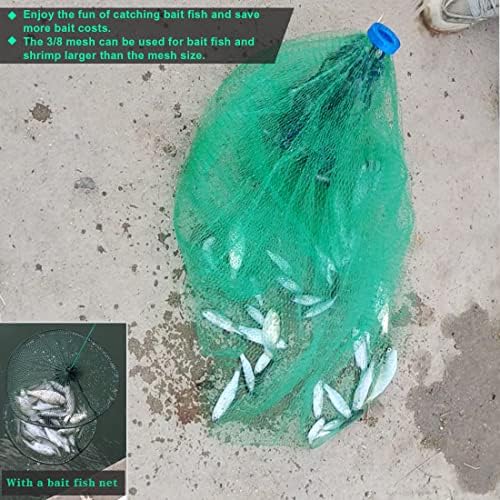 Drasry Saltwater American Fishing Cast Net 3/8inch Mesh Size for Bait Shrimp Trap Fish Heavy Duty Sinkers Throw Net 3FT/4FT/5FT/6FT/7FT/8FT/9FT/10FT Radius