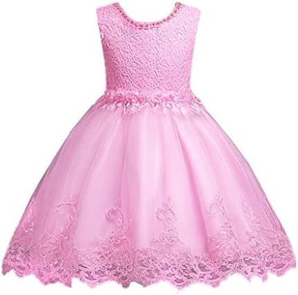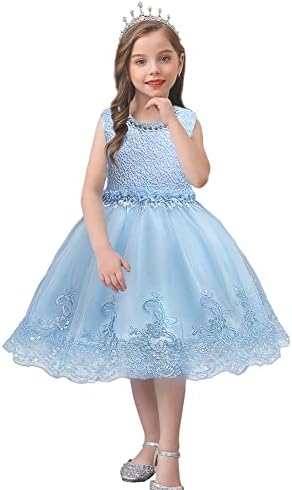 MCieloLuna Flower Girls Satin Tulle Princess Pageant Dress for Wedding Kids Pearls Prom Ball Gowns with Bow-knot