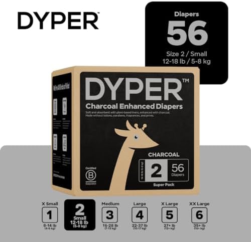DYPER Charcoal Enhanced Diapers | Baby Diapers from Plant-Based* & Honest Materials | Day & Overnight Diapers | Disposable Diapers for Sensitive Skin (Size 3, 50, Count)