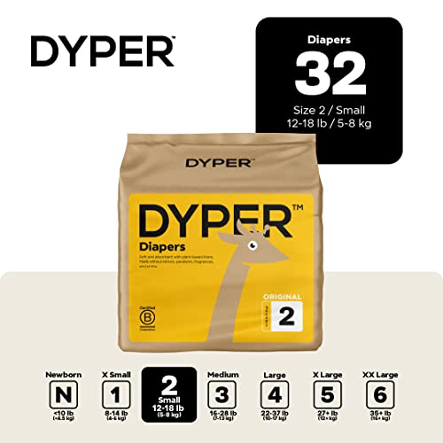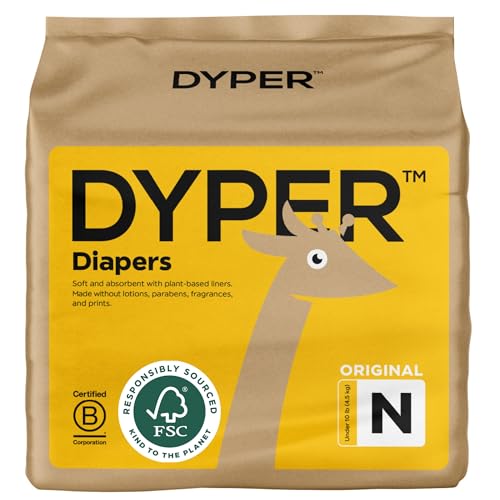 DYPER Viscose from Bamboo Baby Diapers Size 1 | Honest Ingredients | Cloth Alternative | Day & Overnight | Made with Plant-Based* Materials | Hypoallergenic