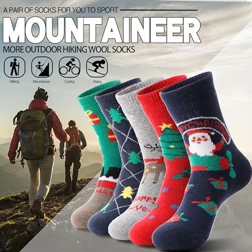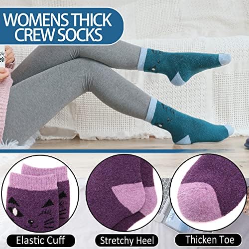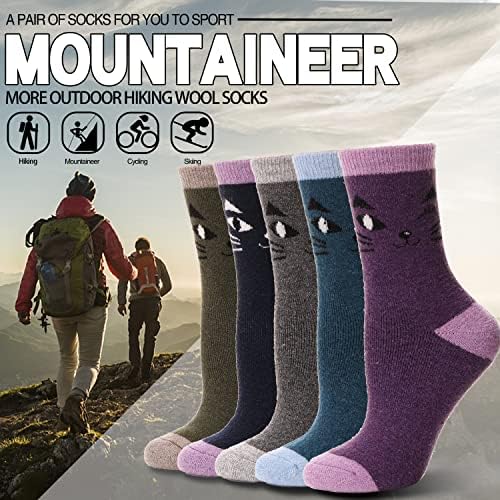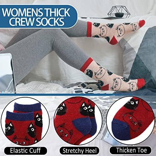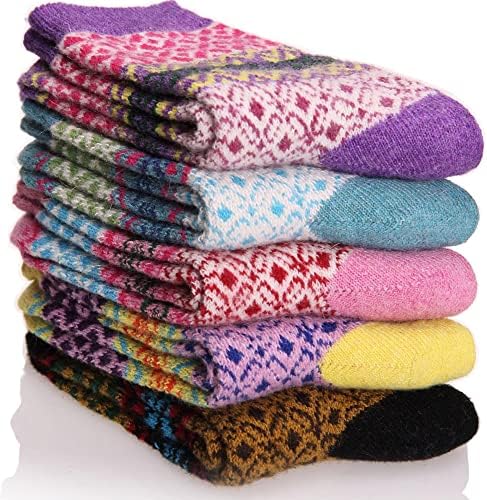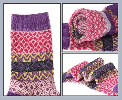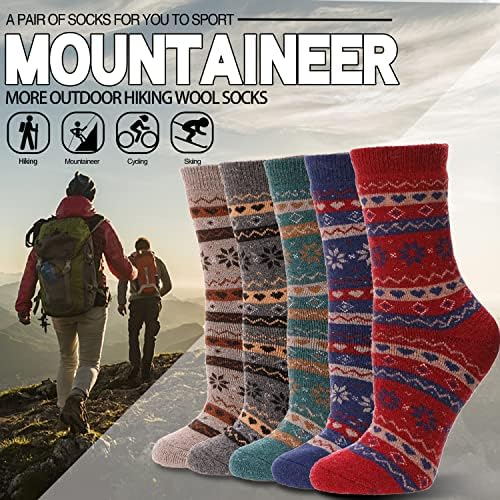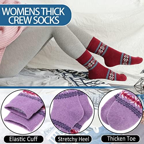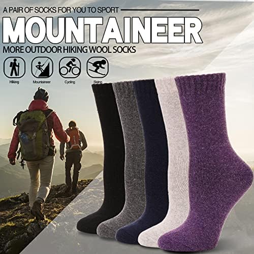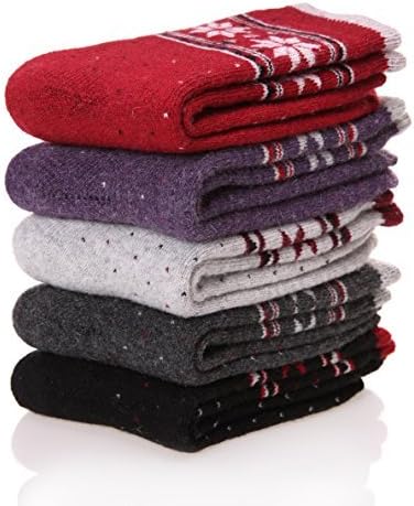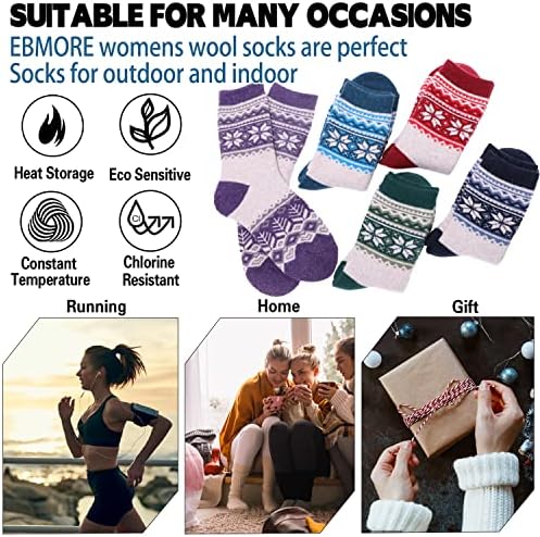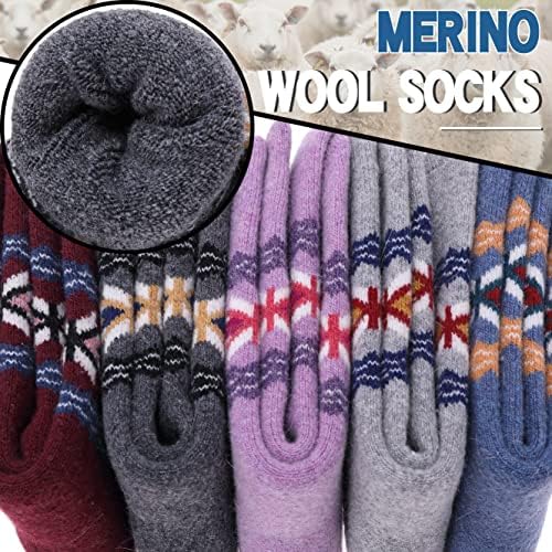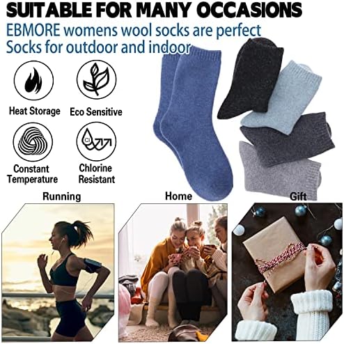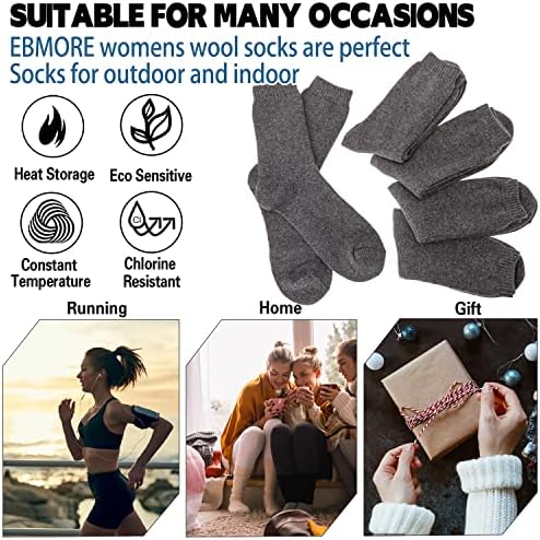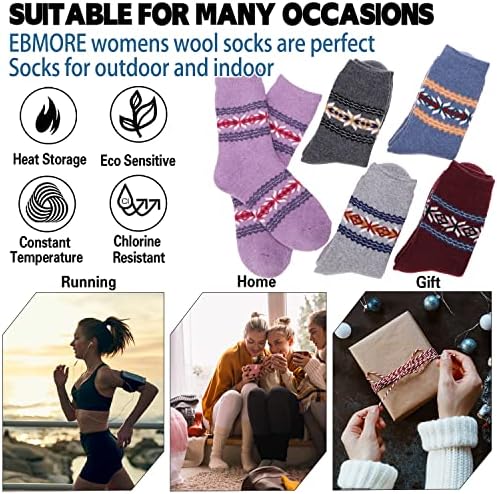 EBMORE 5 Pairs Womens Merino Wool Thermal Socks Winter Thick Warm Hiking Cozy Crew Comfy Boot Socks