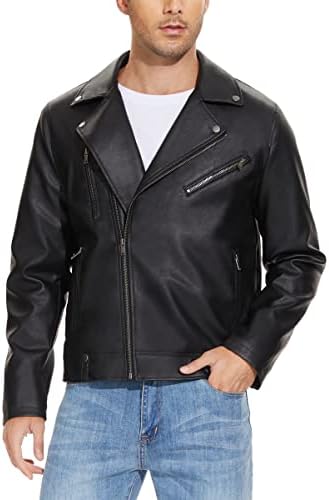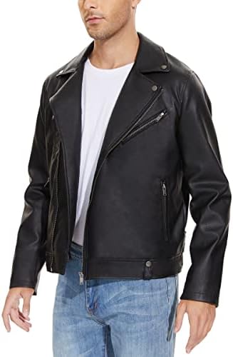 Fahsyee Leather Jackets for Men, Faux Bomber Jacket Men Motorcycle Lapel Asymmetric Zip-Up Blet Slim Fit Biker Coat