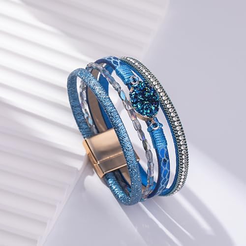 FANCY SHINY Boho Leather Wrap Bracelets Bohemian Crystal Bracelets Trendy Layered Bracelet with Magnetic Clasp Stackable Jewelry for Women