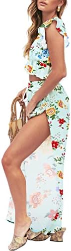 EOSIEDUR Women's Chiffon Bohemian Floral Printed 2 Piece Sets Crop Cami Top & Split Beach Party Maxi Dress