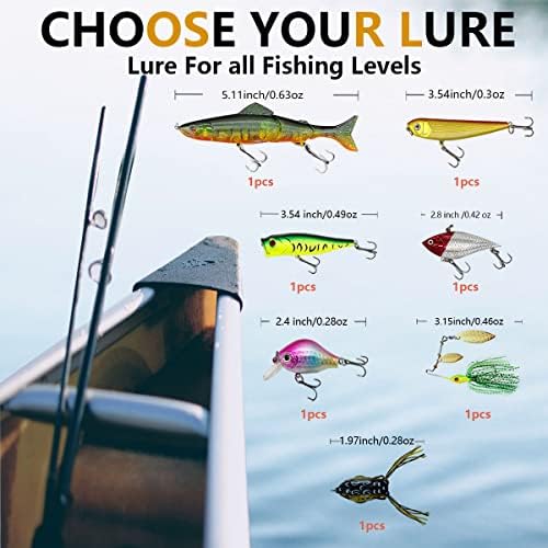 Fishing Lures Kit Set, Baits Tackle Including Crankbaits, Topwater Lures, Spinnerbaits, Worms, Jigs, Hooks, Tackle Box and More Fishing Gear Lures for Bass Trout