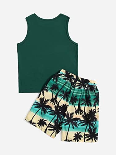 Floerns Boys Boho Sleeveless Tank Top Tropical Print Shorts Set 2 Piece Outfit