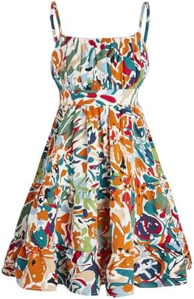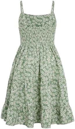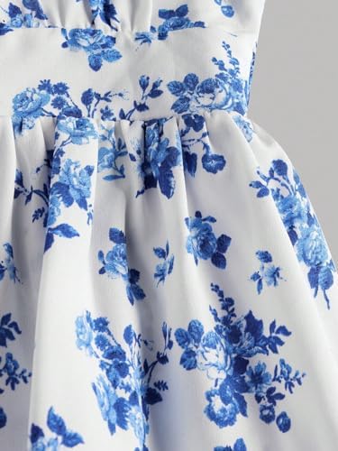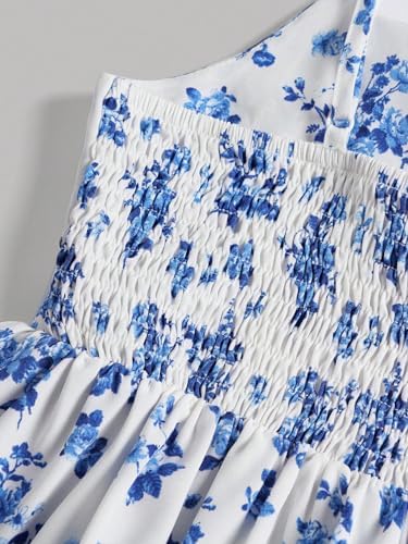 Floerns Girl's Floral Print Sleeveless Ruched Ruffle Hem A Line Cami Short Dress