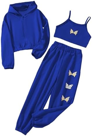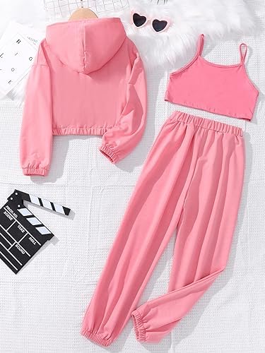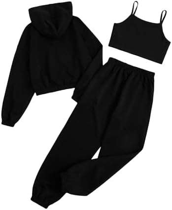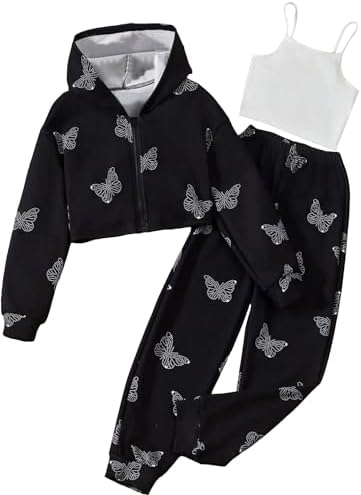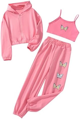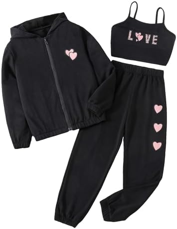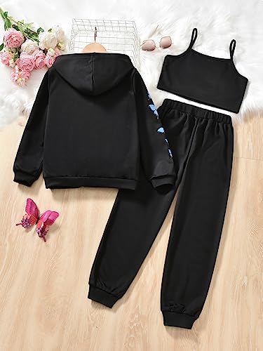 Floerns Girls Graphic Print Clothes Cami Top Sweatpants with Jacket 3 Piece Outfit