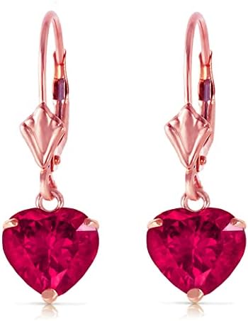 Galaxy Gold GG 14K Solid Rose Gold Lab Grown Heart Ruby Necklace and Earrings Set Grade AAA