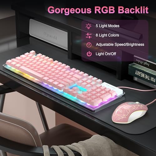 Gaming Keyboard and Mouse Combo, K1 RGB LED Backlit Keyboard with 104 Key for PC/Laptop(White)