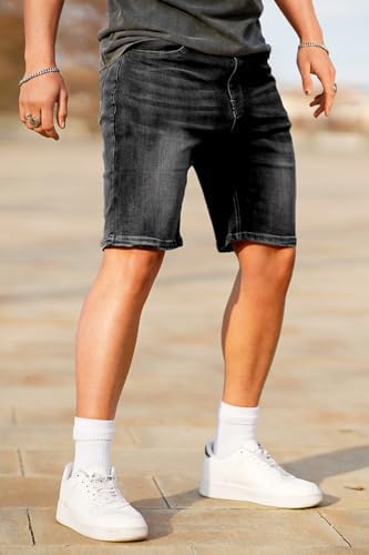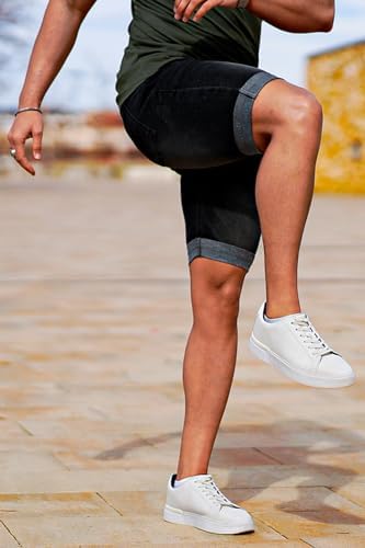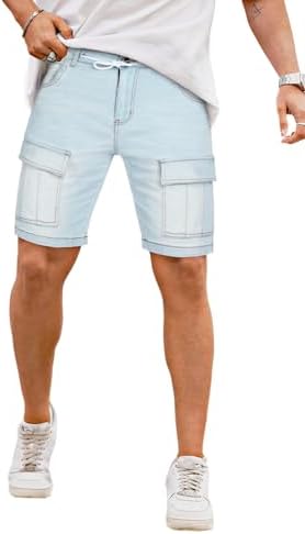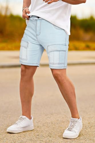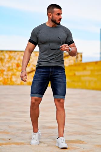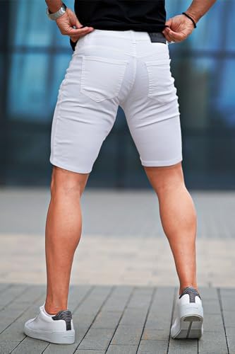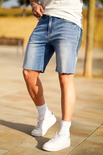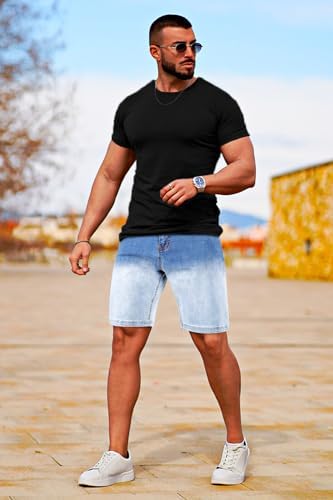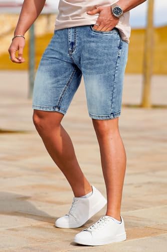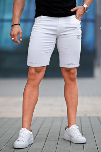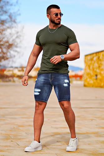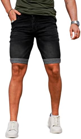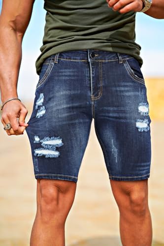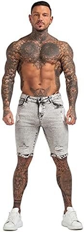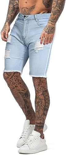 GINGTTO Men's Denim Shorts Slim Fit Stretch Ripped Short Jeans