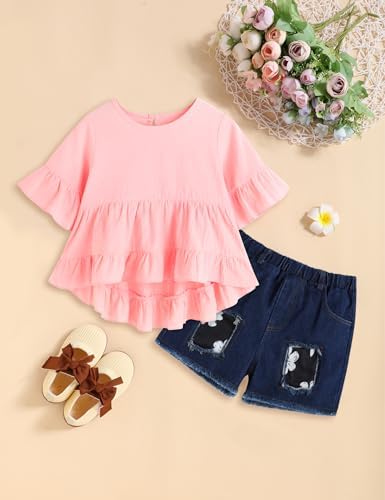 Dokotoo Girls Summer T-Shirt and Shorts Set with Side Pockets