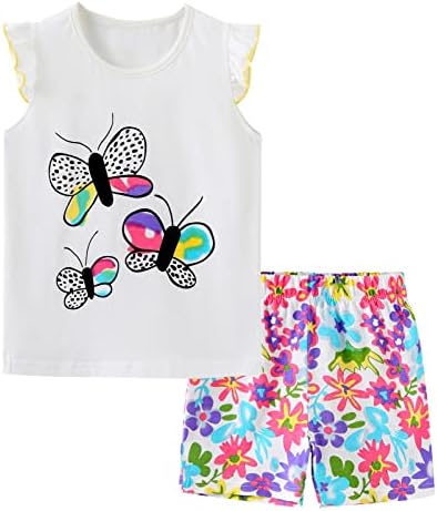 Girl Summer Short Set Cotton Outfits Short Sleeveless Tee T Shirt Tank Top Shorts Pant 2PC Set 2-7Y