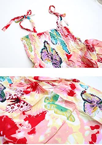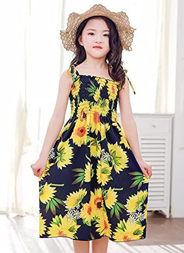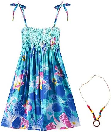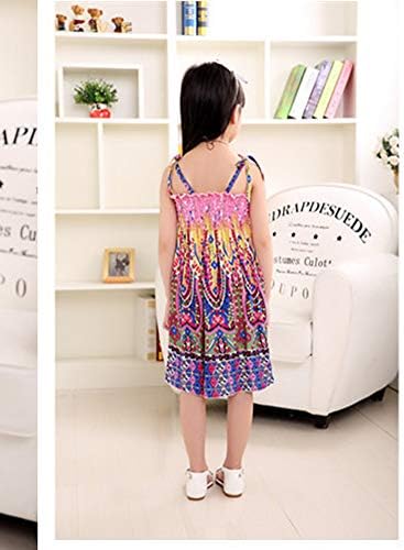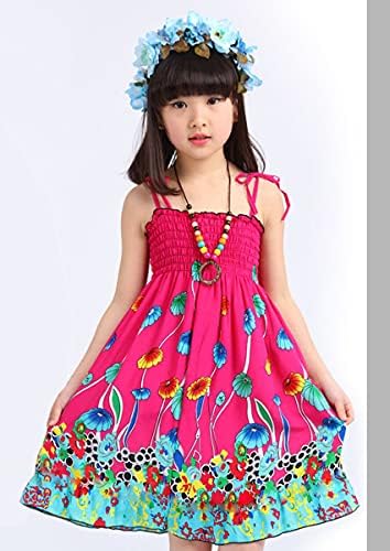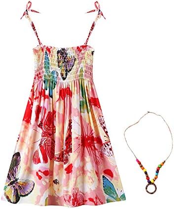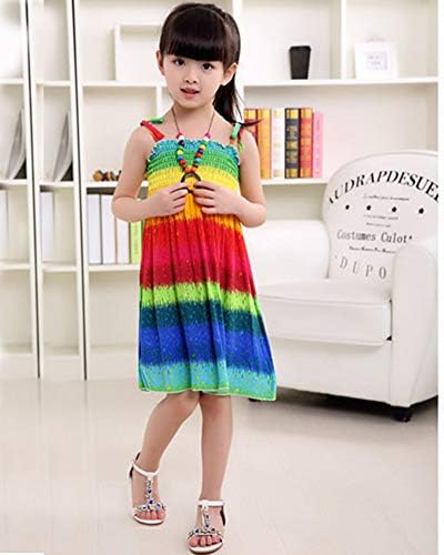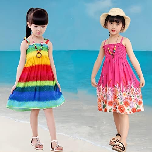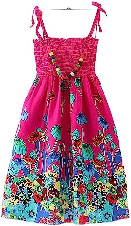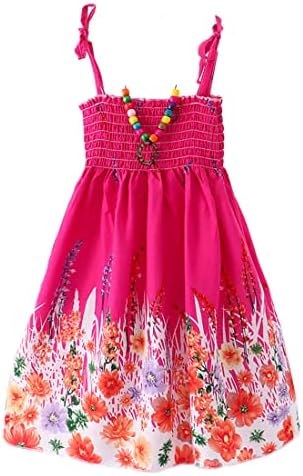 Girls Bohemian Dresses Floral Sleeveless Rainbow Beach Sundress with Necklace 2-12T