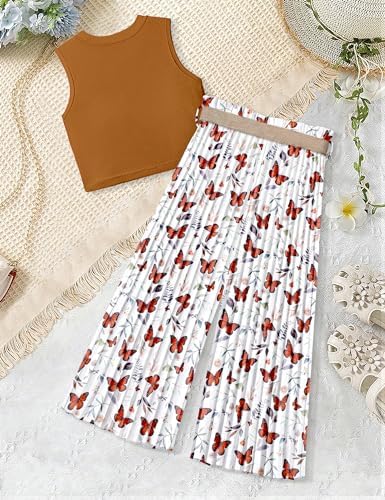 Girls Clothes 7-14Y Kids Clothes Girls Rib Crop Tank Tops + Pleated Wide Leg Pants Girls 2 Piece Summer Outfits