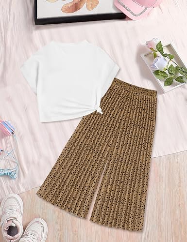 Girls Clothes Crop Tops Pleated Wide Leg Pants 2Pcs Spring Summer T-shirt Outfit