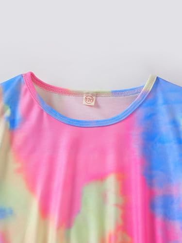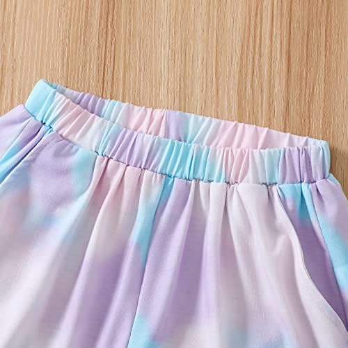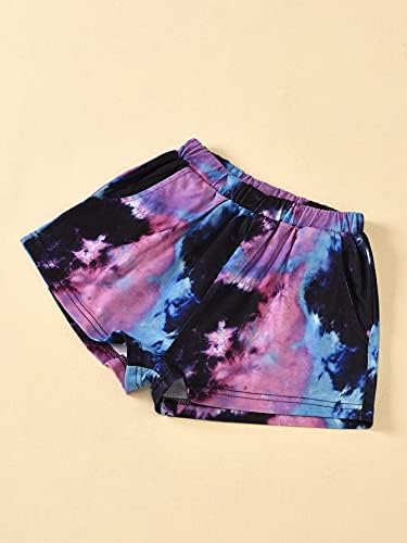 Girls Summer Tie-Dye Outfits Elastic Drawstring T-Shirt Crop Top and Elastic Waist Shorts Set with Side Pockets