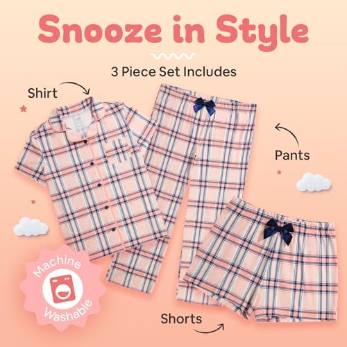 Girls Ultra Soft Button Down Pajamas, 3 Piece Pajama Set, pjs for teen girl, Size 7-16