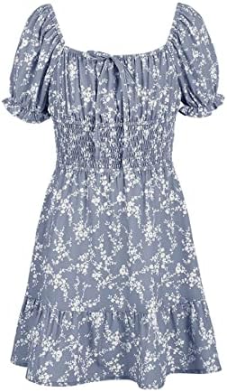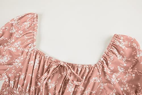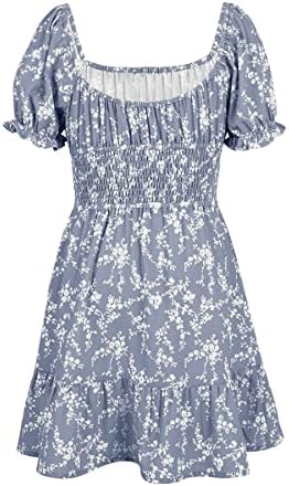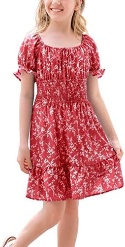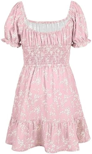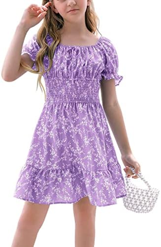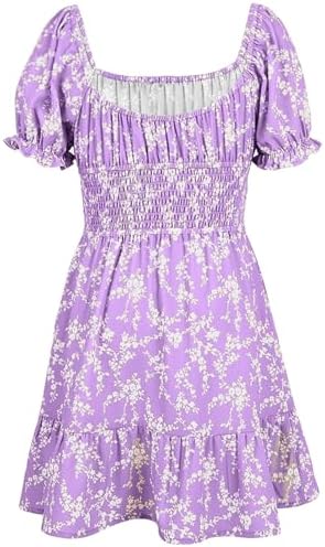 Goranbon Girls' Summer Floral Dress Kids 2024 Puff Sleeve Square Neck Smocked Flowy Sun Dresses