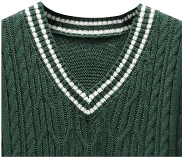 GORGLITTER Men's Striped Cable Knit Sweater Vest Sleeveless V Neck Pullover Sweater Tops