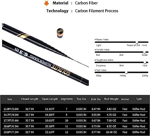 Goture//Telescopic Tenkara Fishing Rod//Ultralight Travel Fishing Rod,Portable Collapsible Bass Crappie Rod,1 Piece Carbon Fiber Inshore Stream Trout Pole 10 12 15 18 21 24 Free Tip Set(Top 3 Segment)