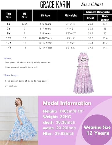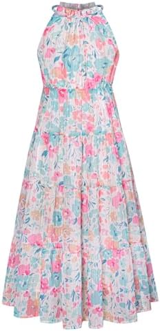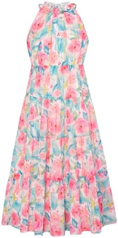 GRACE KARIN Girls Sleeveless Casual A-line Flowy Summer Maxi Dress for 5-14 Years