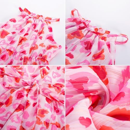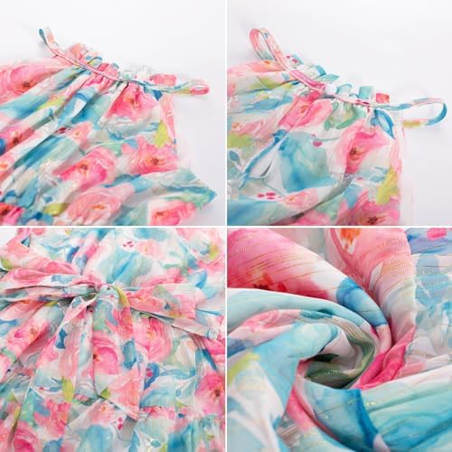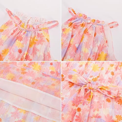 Girls Bohemian Dresses Floral Sleeveless Rainbow Beach Sundress with Necklace 2-12T