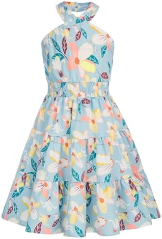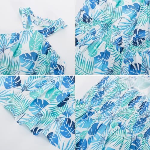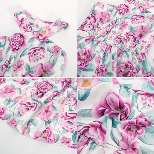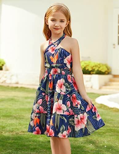 Floerns Girl's Floral Print Sleeveless Ruched Ruffle Hem A Line Cami Short Dress
