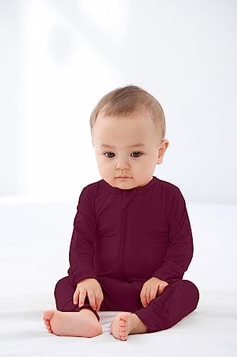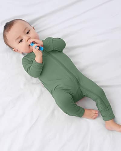GUISBY Baby Pajamas with Mitten Cuffs - 3Pcs Girls Boys 2 Way Zipper Long Sleeve Rayon Sleepers