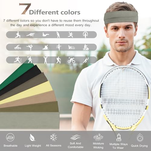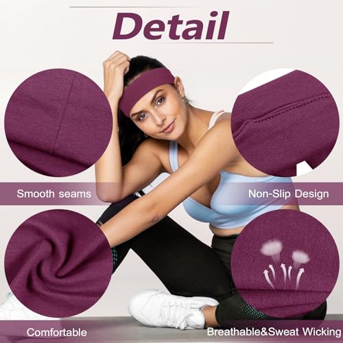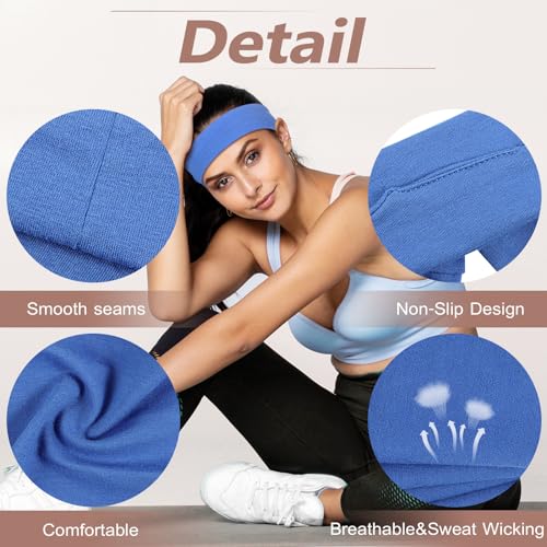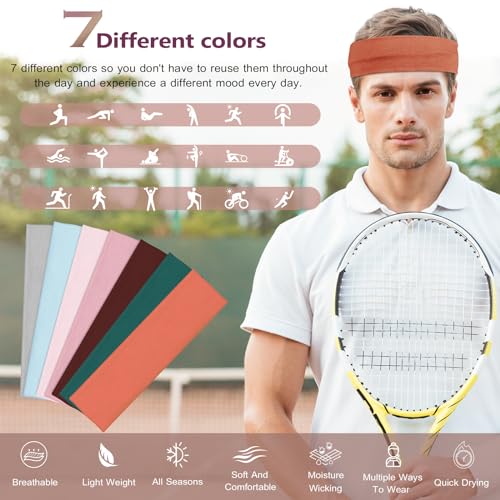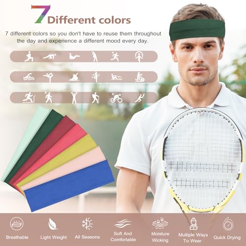 Headbands for Women Non Slip - 7PCS Fashion Sports Hair Bands for Women's Hair, Soft Cotton Cloth Stretchy Headbands for Women for Workout Yoga Running