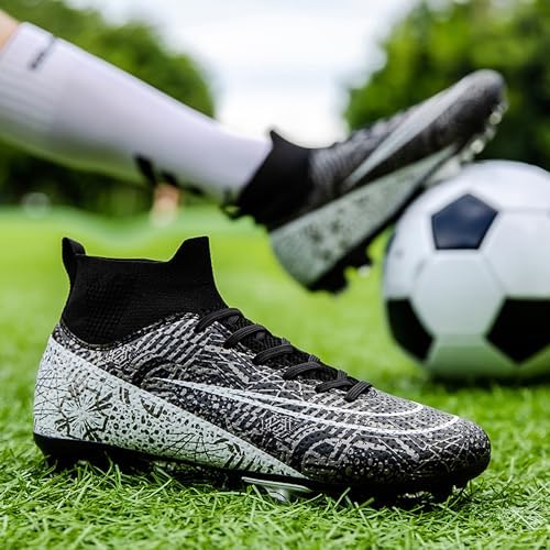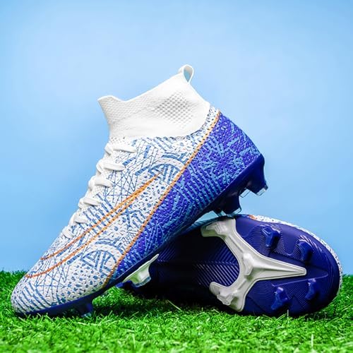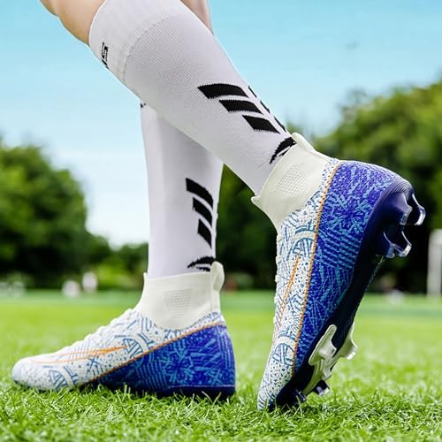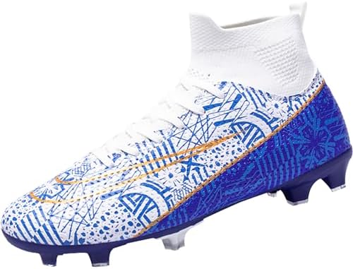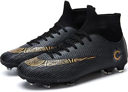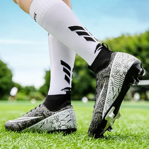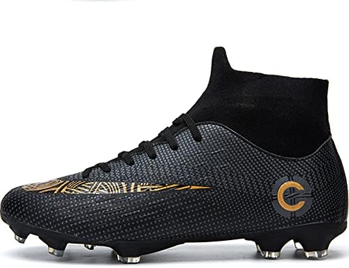 HHY Men's Soccer Cleats Football Shoes High-Tops Lace-Up Non-Slip Spikes