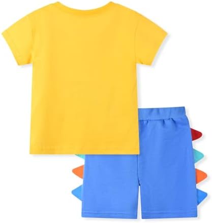HILEELANG Toddler Boy Summer Short Clothes Sets Cotton Crewneck Tees Shorts Beach Playwear Outfits