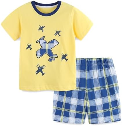 HILEELANG Toddler Boy Summer Short Clothes Sets Cotton Crewneck Tees Shorts Beach Playwear Outfits