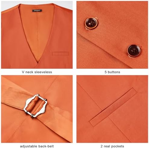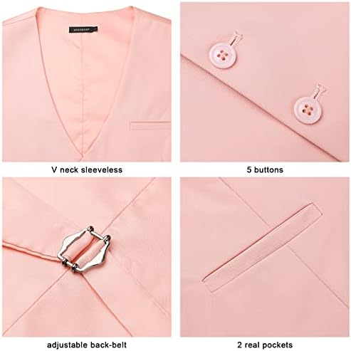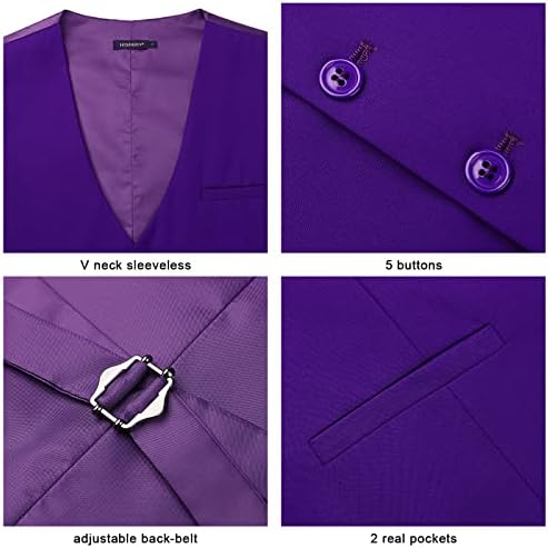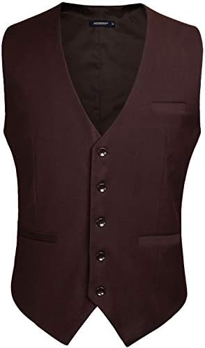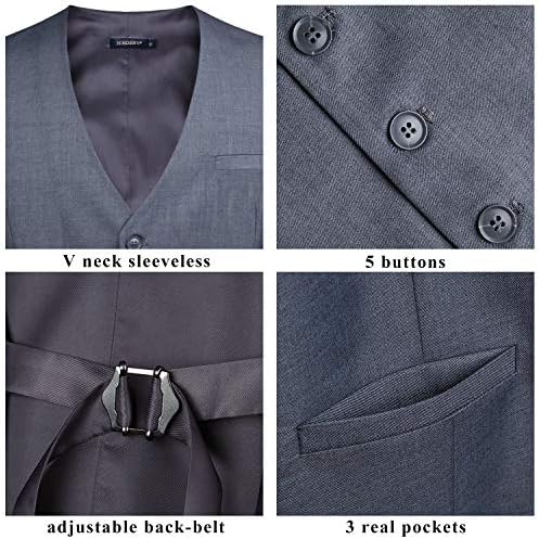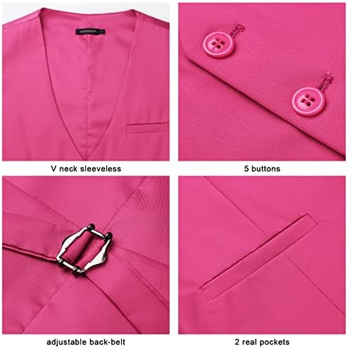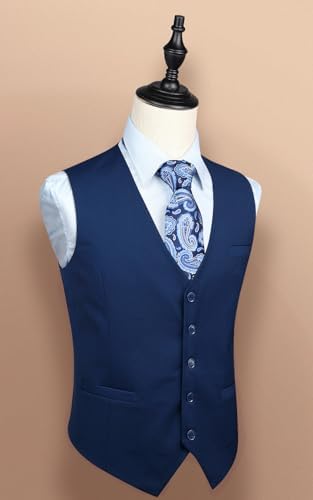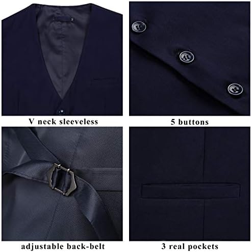HISDERN Men's Suit Vest Business Formal Dress Waistcoat Vest with 3 Pockets for Suit or Tuxedo