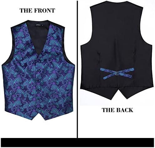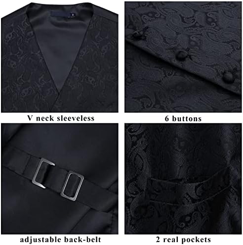 HISDERN Mens Vest Tie Set 3PC Formal Waistcoat Paisley Floral Jacquard Necktie Pocket Square Suit Vests Wedding Party
