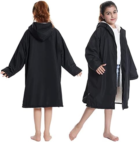 Hiturbo Warm Kids Swim Parka: Waterproof Changing Robe - Oversize Swimming Coat - Hooded Surf Poncho - Thick Lining (7-14Y)