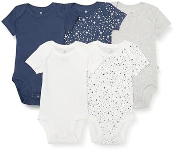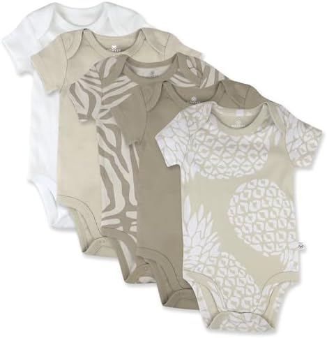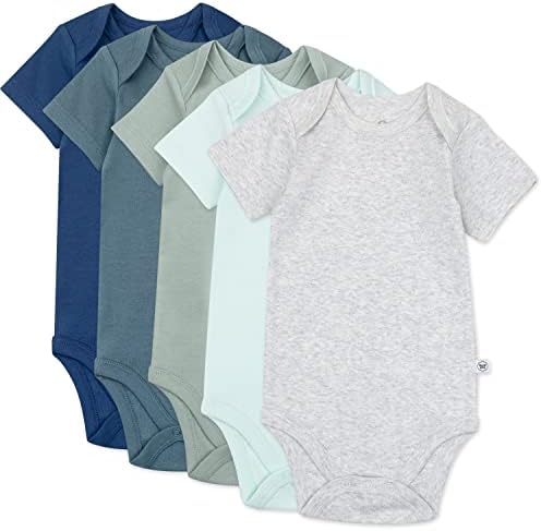 HonestBaby baby-boys 5-pack Short Sleeve Bodysuits One-piece 100% Organic Cotton for Infant Baby Boys, Unisex